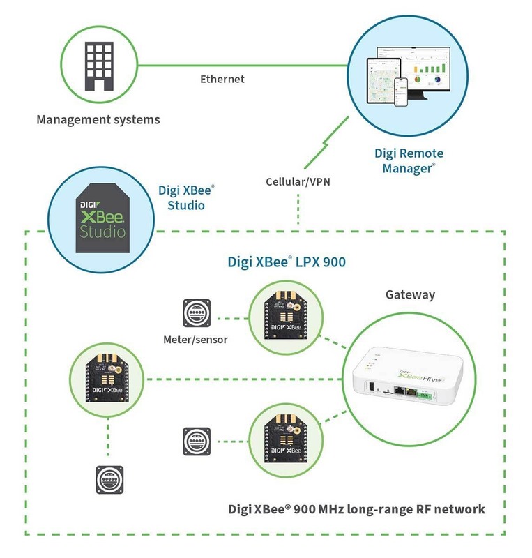 该模块提供一流的网状或多点联网协议(DigiMesh),视距可达 17 公里。它非常适合需要长距离通信的农业和能源应用。