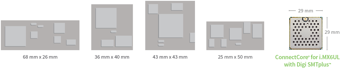 其正在申请专利的 Digi SMTplus™ 表面贴装外形尺寸使您可以利用成熟易用的边缘压铸 SMT 技术选择简化的设计集成,或选择通用的 LGA,以获得几乎所有接口的终极设计灵活性。