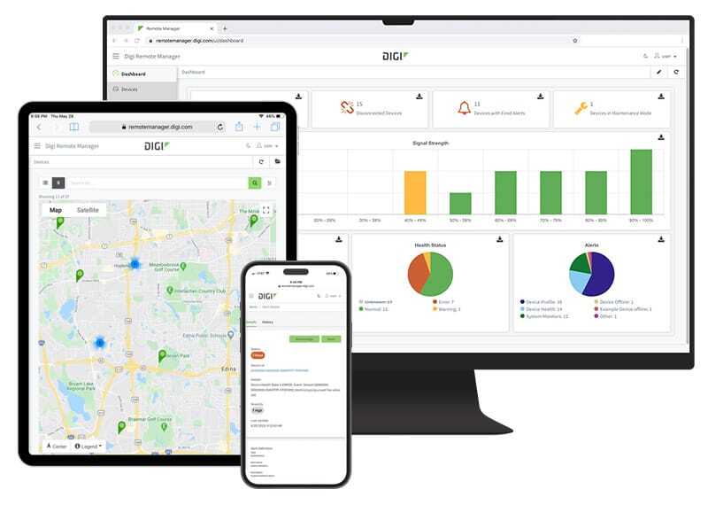 利用 Digi RM(基于云的部署指挥中心)获取重要信息并管理网络。Digi RM还提供安全的终端接入,可通过串行端口和命令行界面对边缘设备进行带外管理。Digi IX40还支持可选的2FFDigi eSIM附件,实现了远程运营商切换、零接触激活和增强的广域网灵活性。
